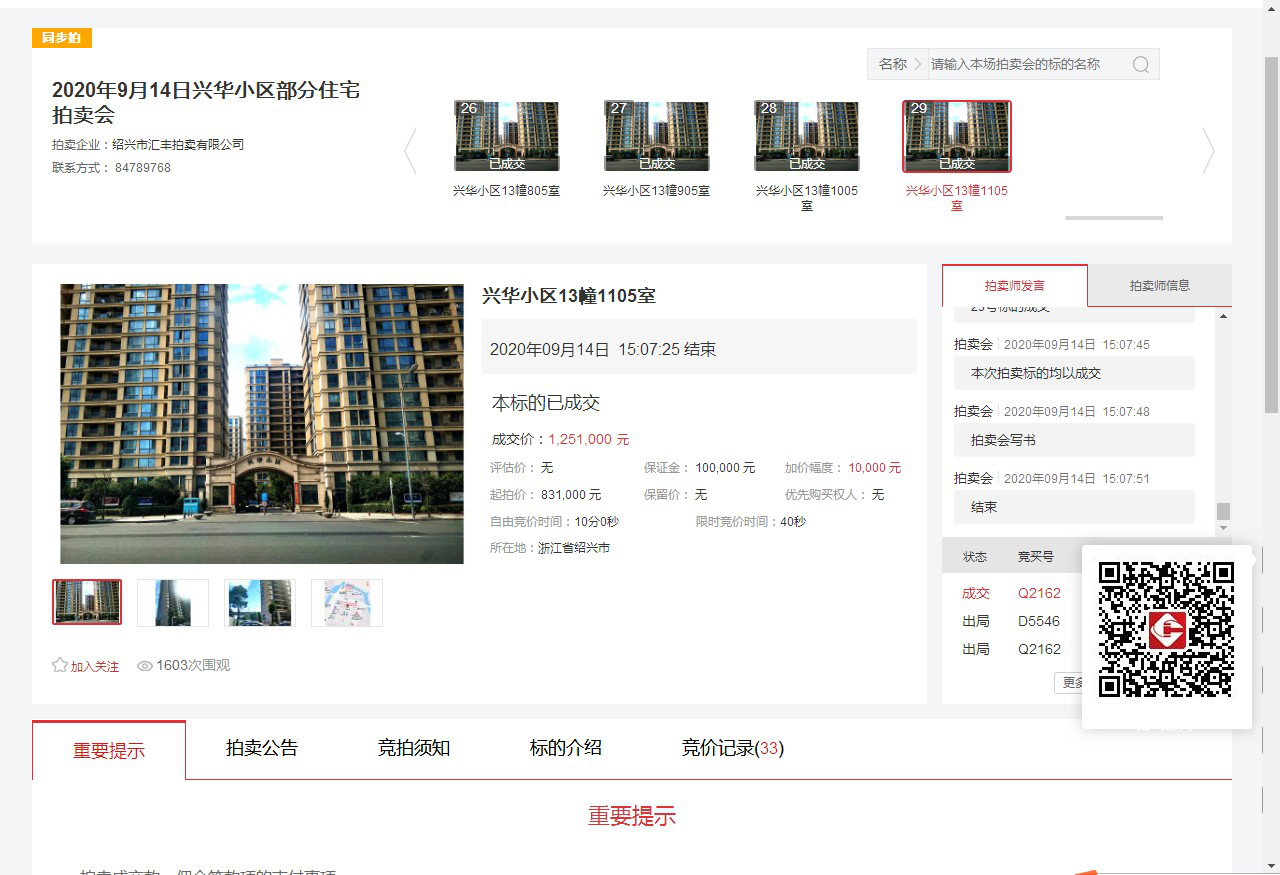 為做好新冠疫情防控工作,應交易中心要求,9月14日上午8時,集團首次采用網上拍賣方式,通過中國拍賣行業協會中拍平臺,成功拍賣興華小區29套住宅。