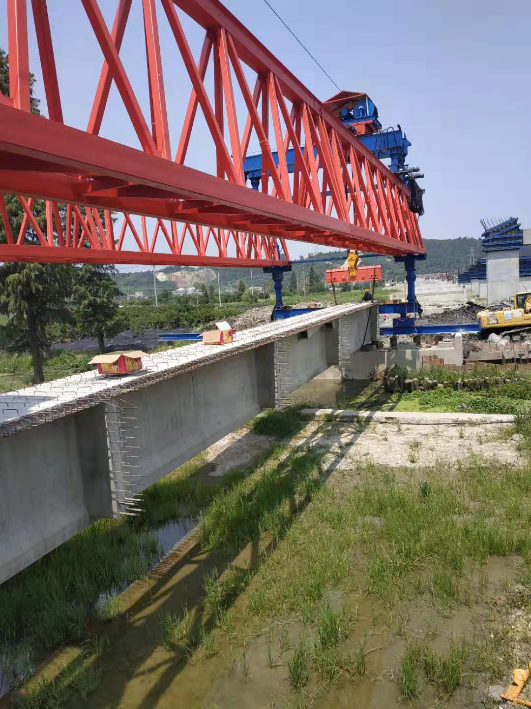 8月22日上午,鏡水路南延工程首片T梁的試吊架設(shè)順利就位,這標(biāo)志著鏡水路南延工程T梁安裝作業(yè)正式拉開了序幕。鏡水路南延工程全長(zhǎng)8.86公里,合同造價(jià)5.86億元,主要利用杭紹臺(tái)高架橋下空間進(jìn)行布線。本項(xiàng)目新建、改建橋梁15座,其中大橋5座,中小橋10座,需預(yù)制梁板1186片,體量大,任務(wù)重。本次安裝作業(yè)點(diǎn)位于鐵路分離橋右幅,該橋全長(zhǎng)923米,上跨漓鐵鐵路,與壩頭山隧道洞口相接,采用預(yù)應(yīng)力砼(后張)T梁,梁板數(shù)量360片,占總梁板體量近1/3,梁板最大跨徑40m、寬1.5m、高度2.5m,吊裝重量136噸,架梁采用40米軌行式起重架橋機(jī)吊裝。