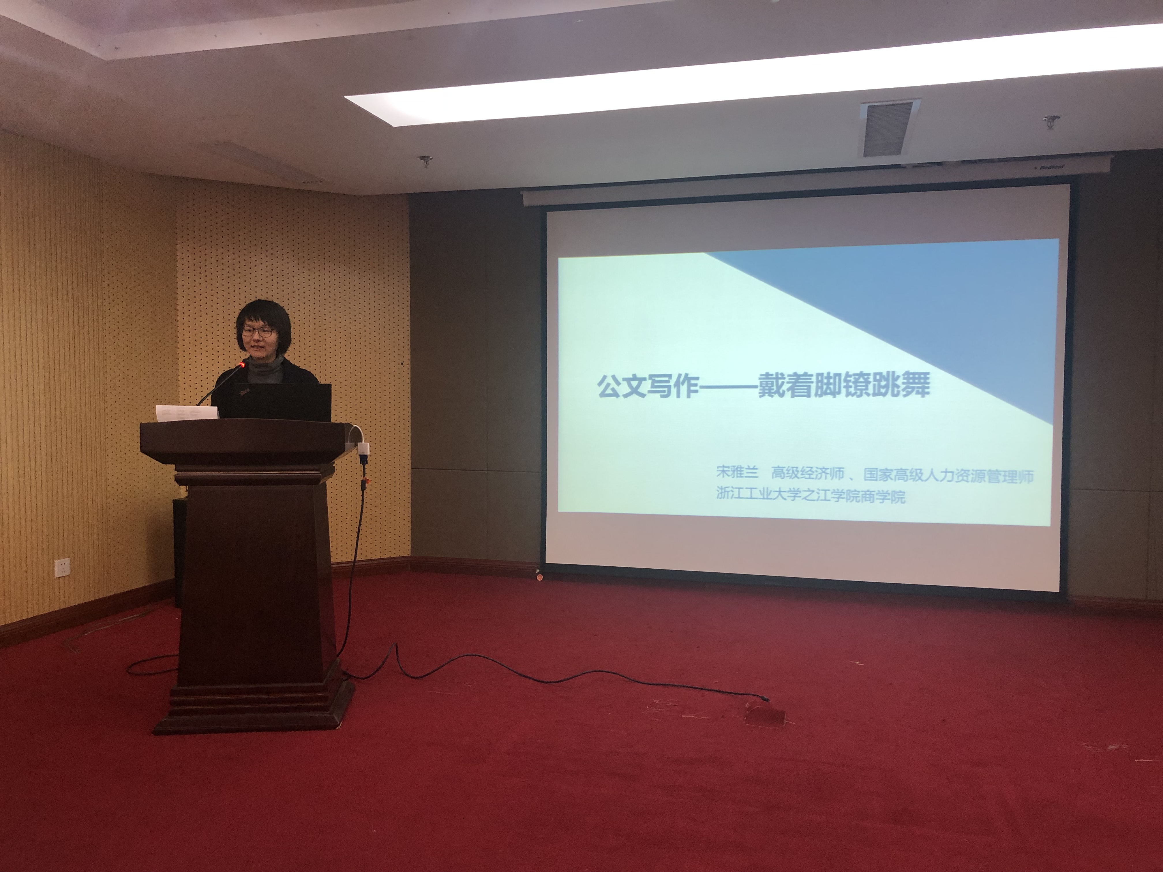 本次培訓,邀請浙江工業大學之江學院宋雅蘭老師進行授課。培訓課上,宋雅蘭老師向大家深入淺出的講述了公文寫作的基礎知識,詳細闡述了公文的規范格式,著重為大家講述了決定、通知、公告、報告、請示等公文的寫作方法,并逐個舉例說明,生動形象。通過培訓,大家收獲頗豐,對公文寫作有了全面認識和深刻理解,希望能把學到的知識用到工作中,增強公文規范意識,不斷提高公文寫作水平,以更好地完成本職工作。