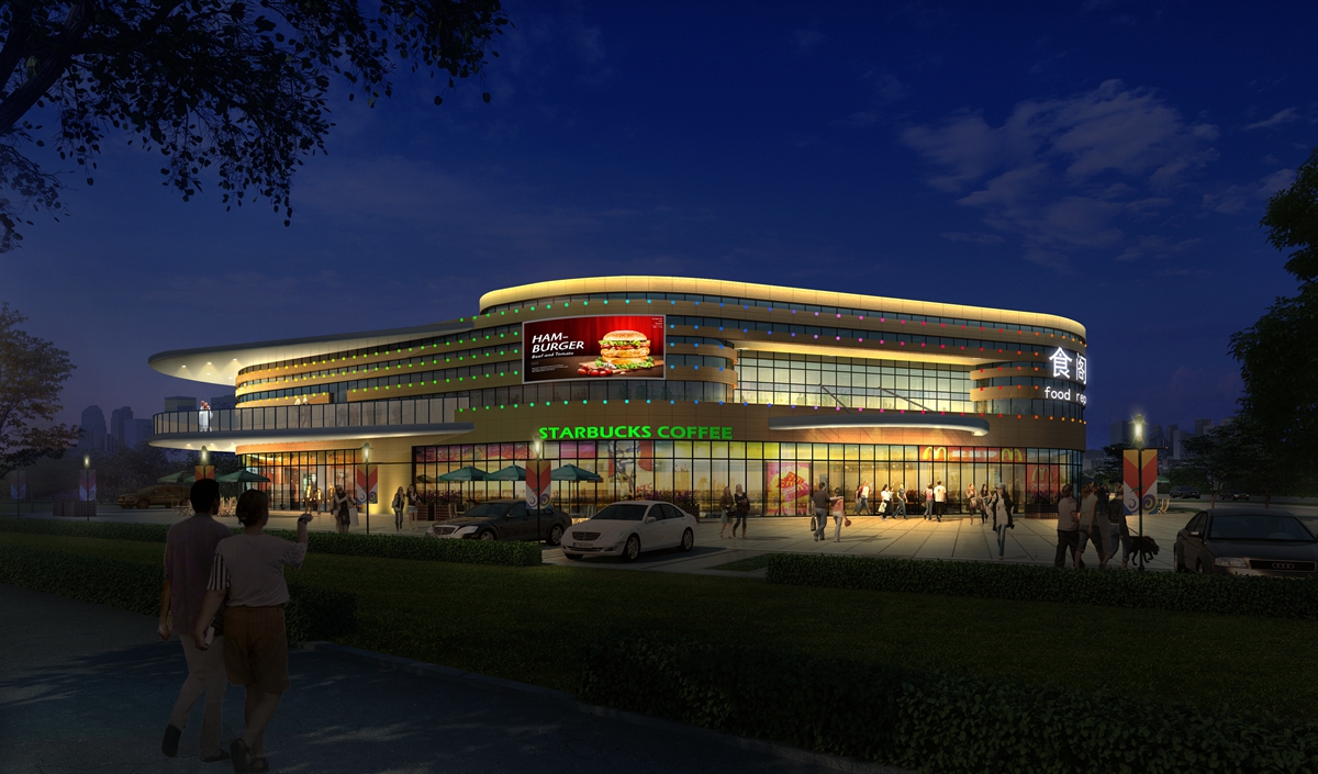 作為純餐飲商業網點的食閣,共配備39個餐飲檔口和21個營業區,分二層而建,一層設置連排檔口的基礎上,配備了精品超市、童玩區、果品、鮮花店等輔助區,明確了餐飲的功能主題分區;二層北面設置露臺,為年輕人提供了一個很好的放松、聚會場所。食閣可容納就餐人數820人左右,共配套188個機動車停車位和約200個非機動車位。食閣的面市,一方面解決了周邊公司上班族的就餐難問題,另一方面對城區小吃、夜排擋的集中營業,方便了食客在同一地點可享受到風味迥異的各地佳肴。
