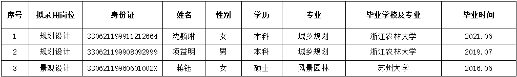 紹興越州都市規劃設計院有限公司擬錄用人員公示
